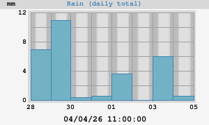 Total: 10.2 mm Max rate: 12.4 mm/h at 03/04/26 18:02:59